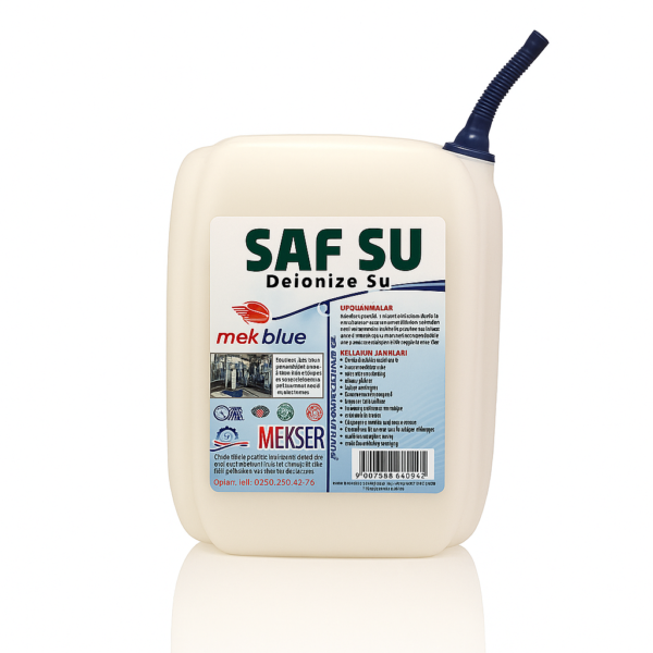 Mekblue Saf Su 5 Litre, endüstriyel ve bireysel kullanımlar için özel olarak üretilmiş yüksek saflıkta demineralize sudur.